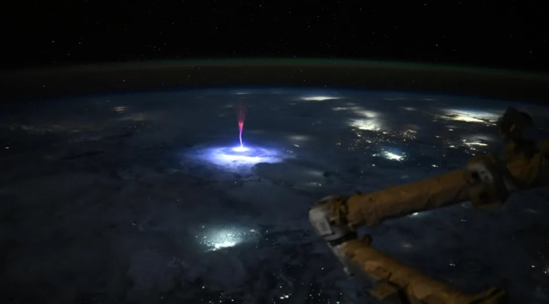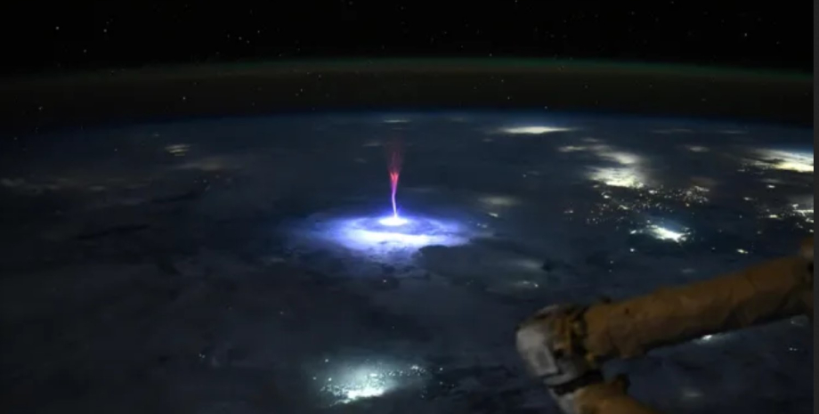 Астронавт NASA с орбиты сделала снимок странной красной молнии | Фото: NASA