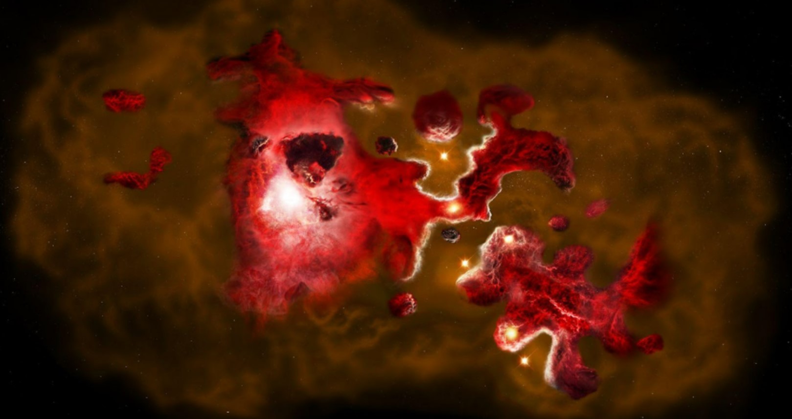 С помощью радиотелескопа ALMA астрономы создали сложную и подробную карту межзвездного газа в древних галактиках. В результате было обнаружено, что самые ранние звезды рождаются в огромных звездных скоплениях, каждое из которых простирается на несколько тысяч световых лет. При этом во многих галактиках было обнаружено, что излучение углерода в межзвездном газе протирается намного дальше за пределы популяции звезд. Это значит, что холодный газ в галактиках может продолжить формировать больше звезд или может быть вытеснен из этих галактик мощными звездными ветрами. Таким образом астрономы получили представление о том, как формировались первые регионы образования новых звезд.