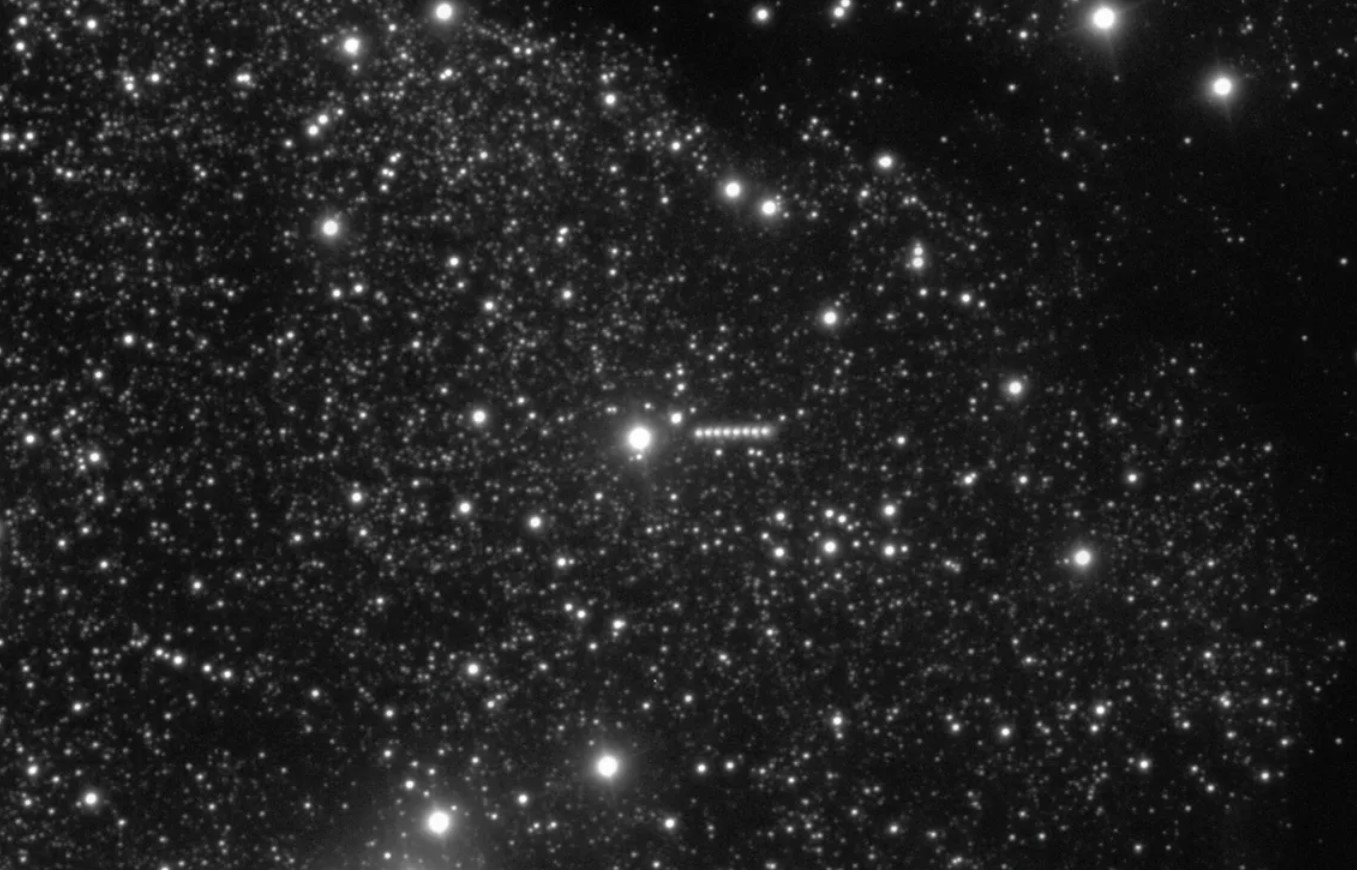 Межзвездная комета 3I/ATLAS в движении показана как ряд точек.Снимок телескопа VLT