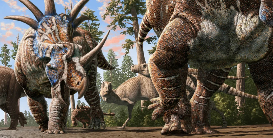 Теперь исследователи обнаружили следы динозавров и пришли к выводу, что они принадлежали хищным тираннозаврам и минимум двух видам травоядных динозавров. Одним из последних был цератопсовый динозавр — травоядный род, известный своими воротниками и рогами. Ученые продолжили раскопки и обнаружили минимум 13 отпечатков цератопсов.