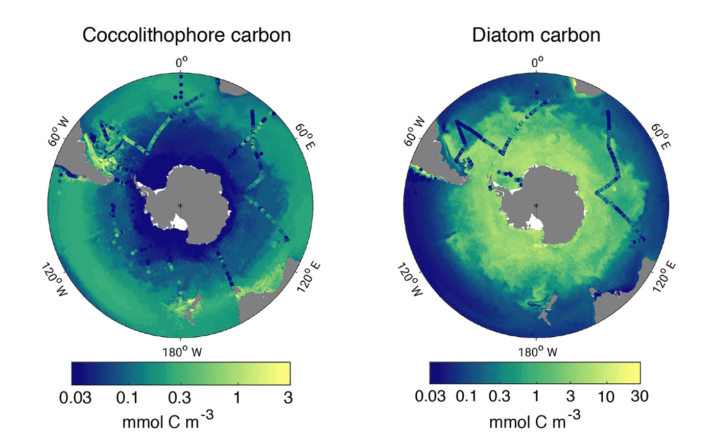Ранее большой кальцитовый пояс считался территорией кокколитофорид. Однако результаты указывают на то, что все, что южнее его полярного фронта, на самом деле является царством диатомовых водорослей.