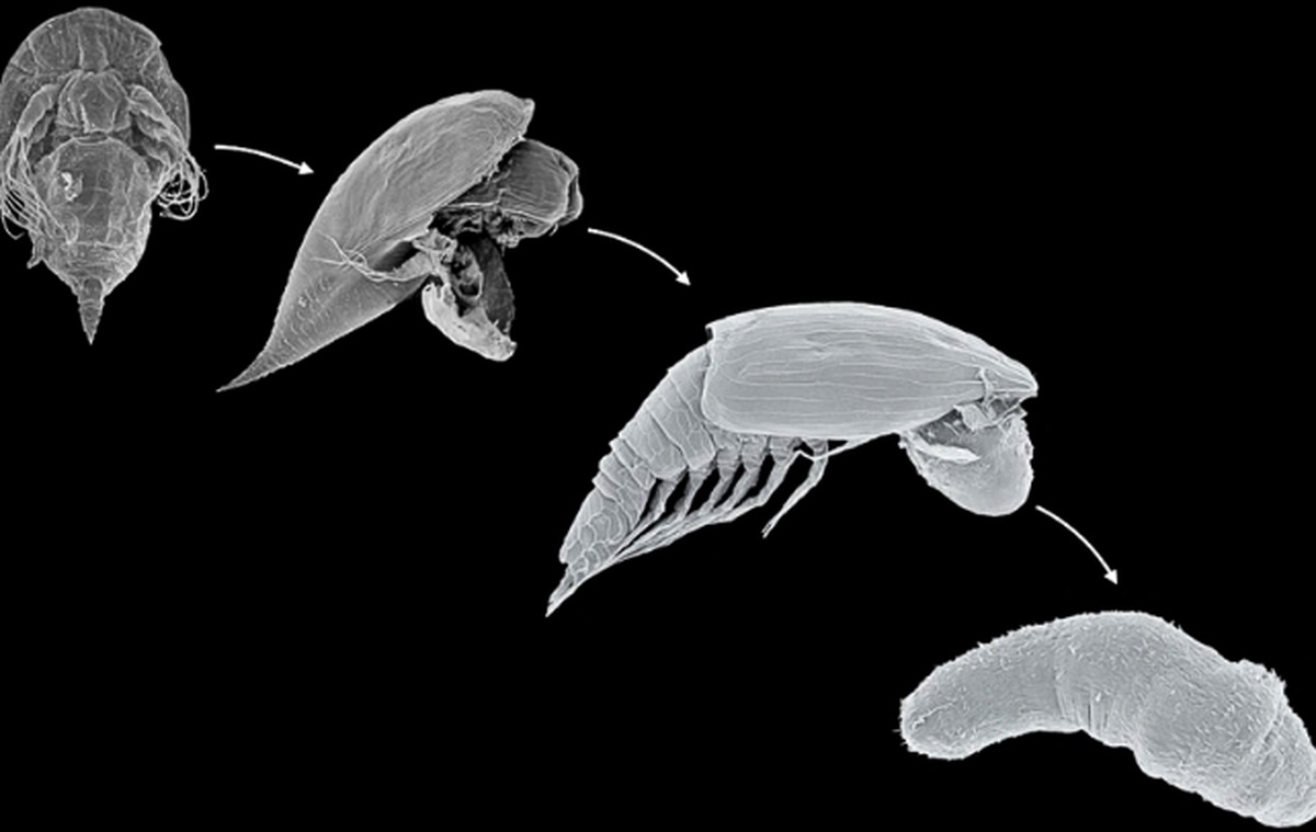 Ученые знали о микроскопических фасетотектанах с 1880-годов, но до сих пор не могли связать личинку со взрослой особью. Это привело к предположениям, что фасектотектанты, похожие на инопланетян, могут иметь паразитическую фазу. Новое исследование ученых подтверждает это предположение.