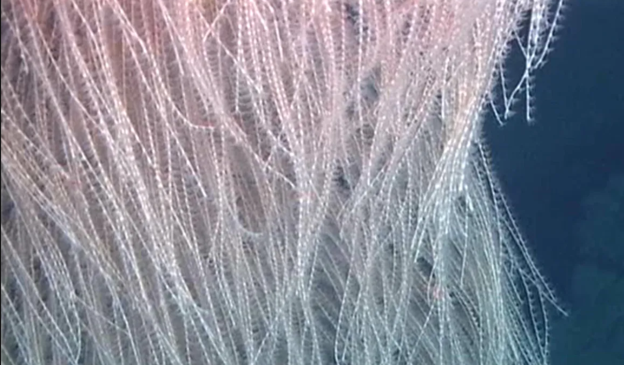 Интересно, что характерный "пух" как раз и является ветвями коралла, отходящими от его "тела". Коралл принадлежит к роду Iridogorgia — это группа глубоководных кораллов, известных именно своими длинными спиралевидными структурами. Кстати, такие кораллы ученые встречали и вблизи Марианской впадины — самого глубоководного среди всех известных водных географических объектов.