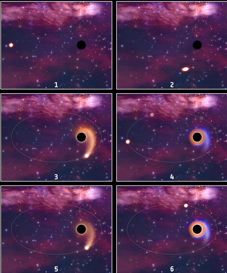 Когда звезды подлетают слишком близко к черной дыре, объясняют астрономы, то сильная гравитация поглотителя материи часто разрывает звезду на части во время события приливного разрушения. И все же некоторые звезды, как показывает моделирование, выживают. При этом они могут потерять до 60% своей оболочки, но сохранить ядро и затем покинуть гравитационное поле черной дыры.
