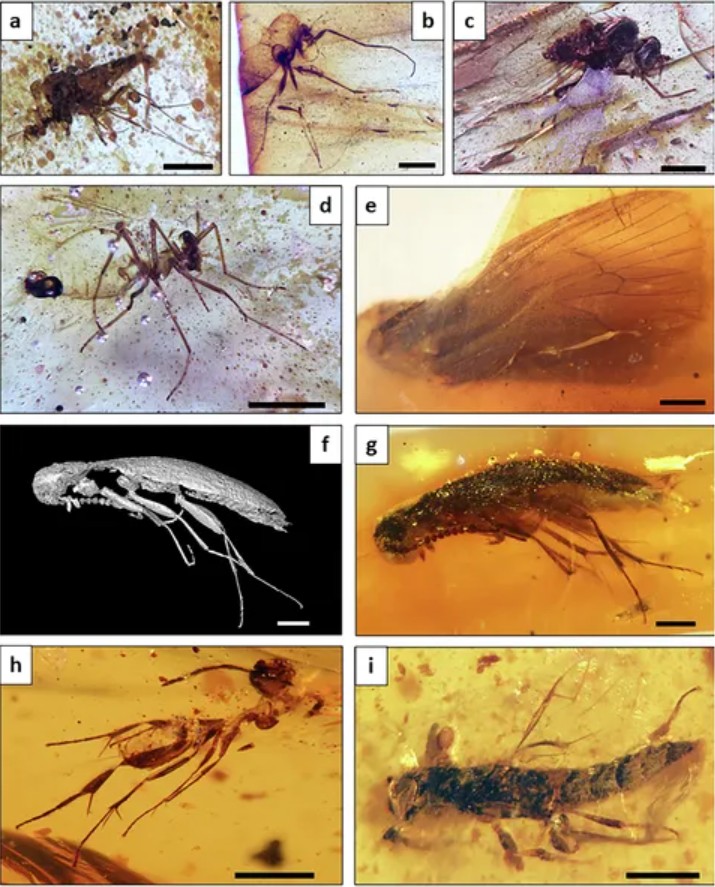 Окаменелости насекомых принадлежали к пяти отрядам насекомых, включая двукрылых (мух), жесткокрылых (жуков) и перепончатокрылых (муравьев и ос), окаменевшая паутина принадлежала виду, плетущему паутину, которая имела круглую, или спиралевидную, форму.