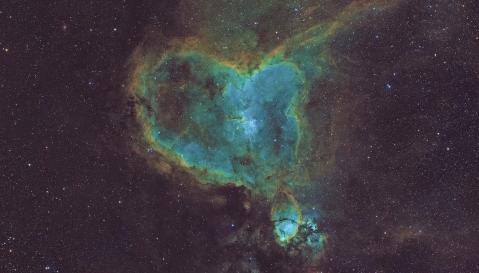 Красочный снимок туманности Сердце был создан с помощью набора астрофотографических фильтров, каждый из которых был разработан для захвата определенных длин волн света, которым впоследствии были присвоены отдельные цвета на этапе постобработки.