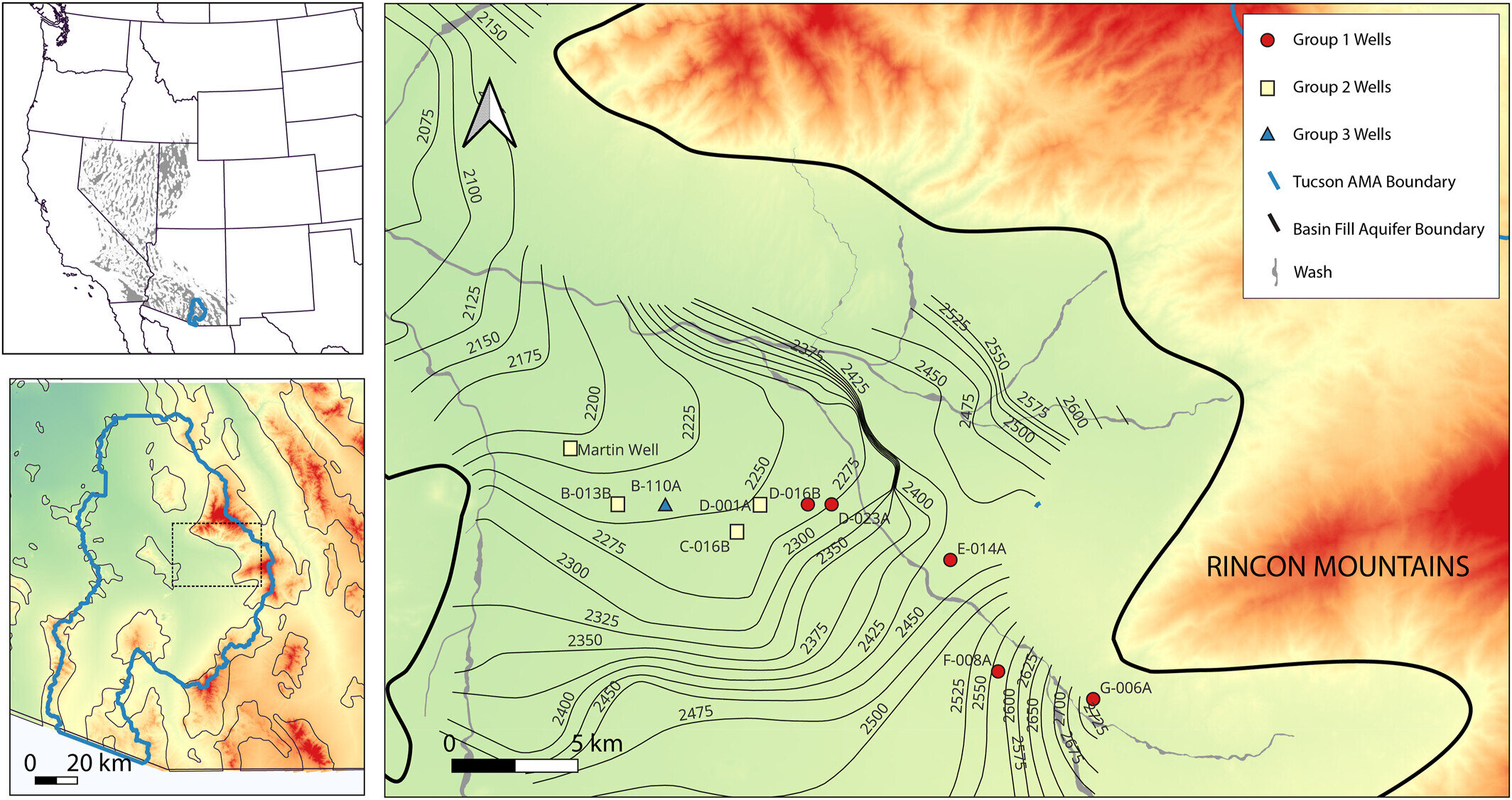 Чтобы восстановить возраст и историю наполнения в бассейне Тусон, ученые выявили химические и изотопные маркеры, поступившие в воду либо через атмосферу, либо через отложения водоносного горизонта. Эти природные вещества дают представление об источнике и возрасте образца воды, но вода относится к разным периодам, а для расшифровки перекрывающихся маркеров потребуются математические модели.