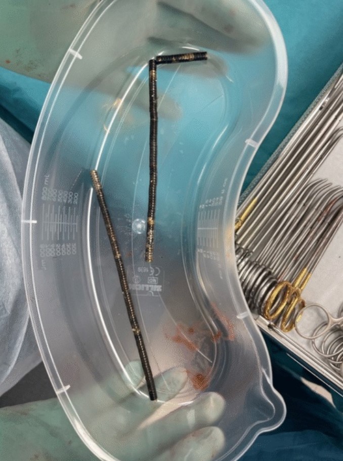 После того, как врачи сделали рентгеновские снимки брюшной полости подростка, они обнаружили, что в разных отделах кишечника мальчика находятся четыре линейных цепочки из неодимовых магнитов, которые соединились. Мелкие металлические предметы соединились, создав разрушительные последствия.