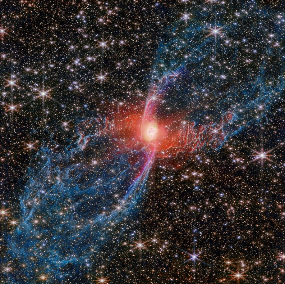 Новая фотография, сделанная с помощью космического телескопа Уэбб позволила увидеть планетарную туманность NGC 6537, также известную как туманность Красный Паук, в беспрецедентных деталях. Ученые считают, что внутри туманности скрывается еще один объект, кроме центральной звезды.