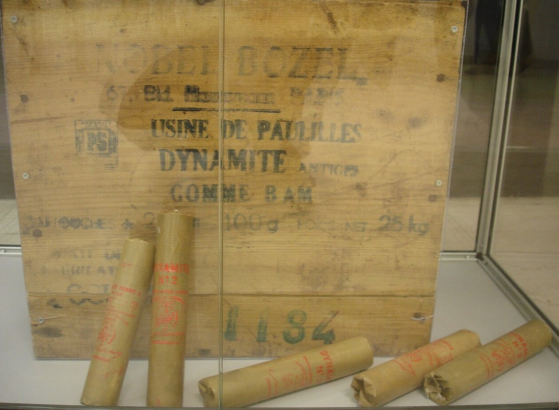Альфред Нобель в 1867 году обнаружил, что, если смешать жидкий нитроглицерин с кизельгуром (пористая осадочная порода, похожая на глину), получается паста, которую можно упаковать и безопасно перевозить. Новая смесь получила название динамит, что в переводе с древнегреческого означает сила. В том же году Нобель запатентовал динамит.