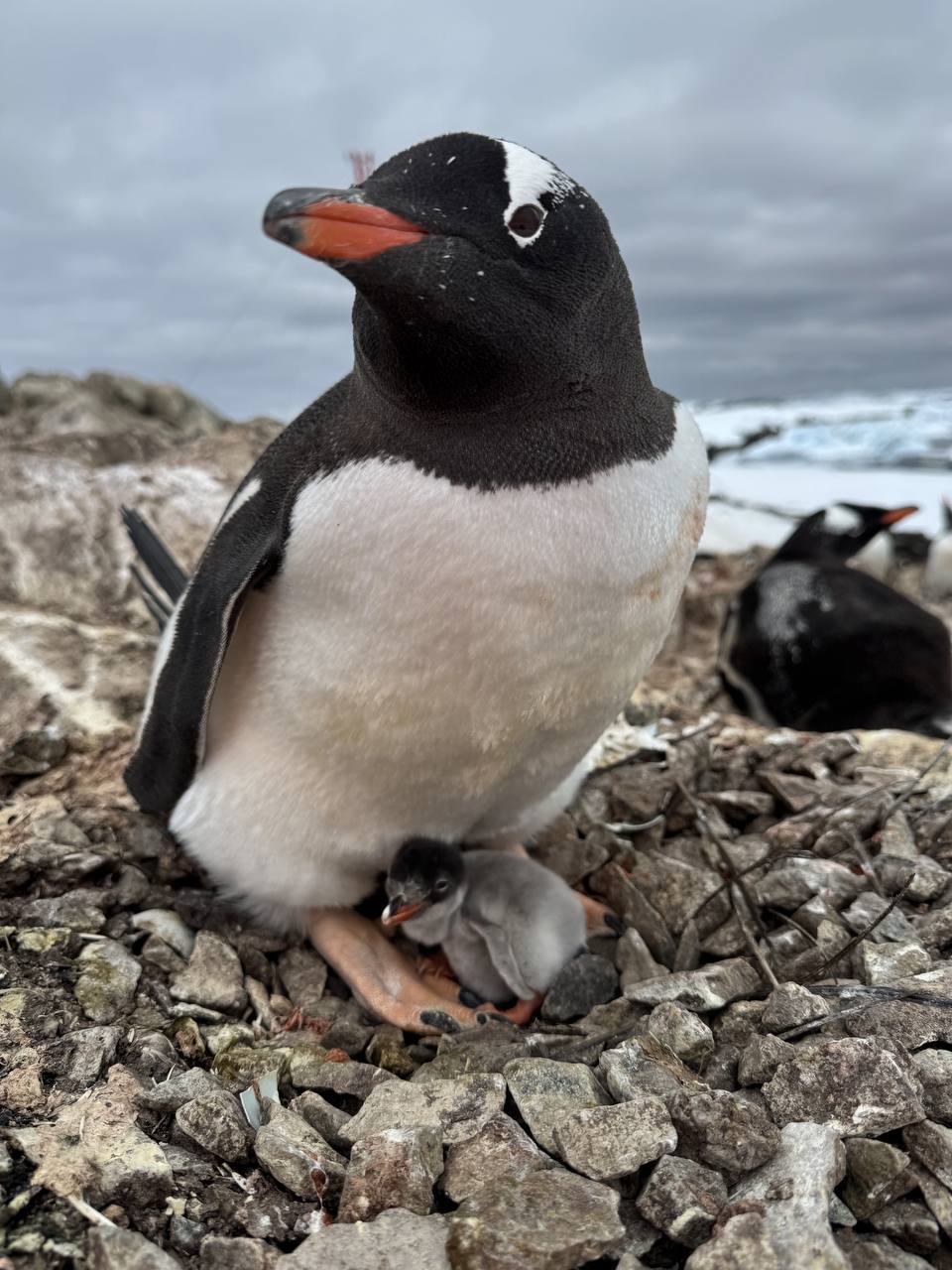 На выходных вблизи станции "Академик Вернадский" вылупился первый пингвиненок, и произошло это в очень символическое время — накануне Дня Антарктиды. Впоследствии гнездо пополнилось еще одним малышом.