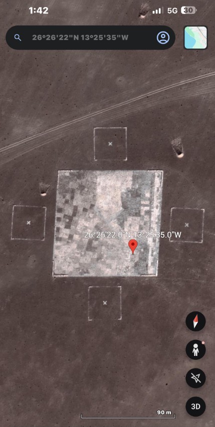Пользователи Google Maps нашли нечто необычное посреди пустыни Сахара. В абсолютно безлюдном месте на земле можно увидеть пять квадратов.