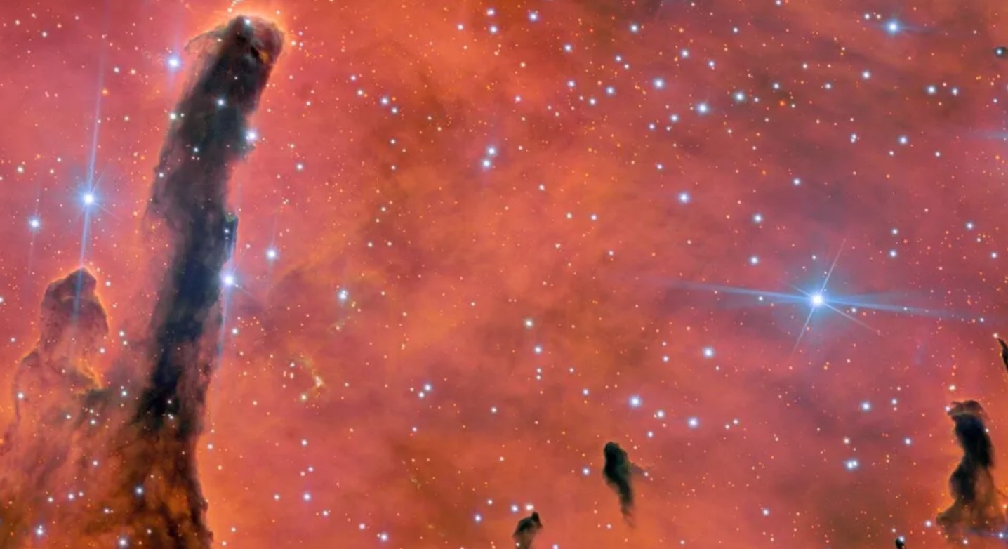 На этом изображении показан набор звездных структур, напоминающих знаменитые "Столпы творения"