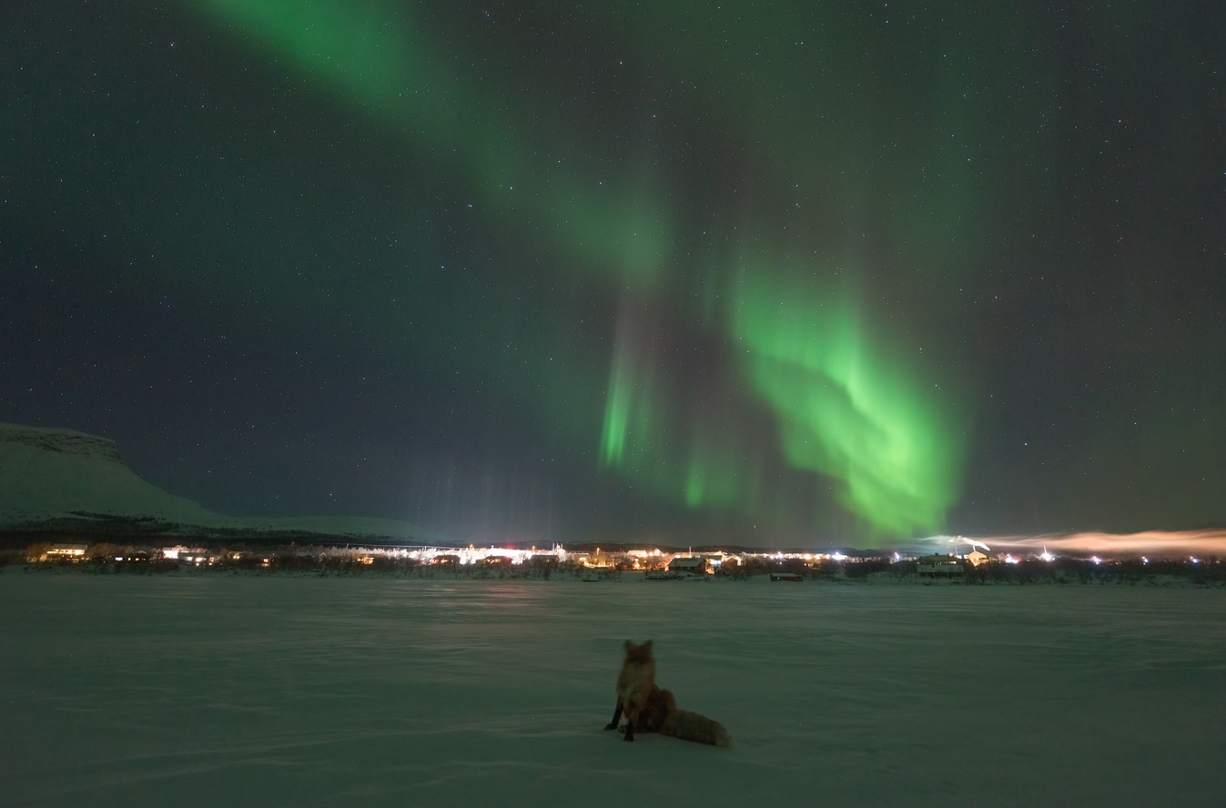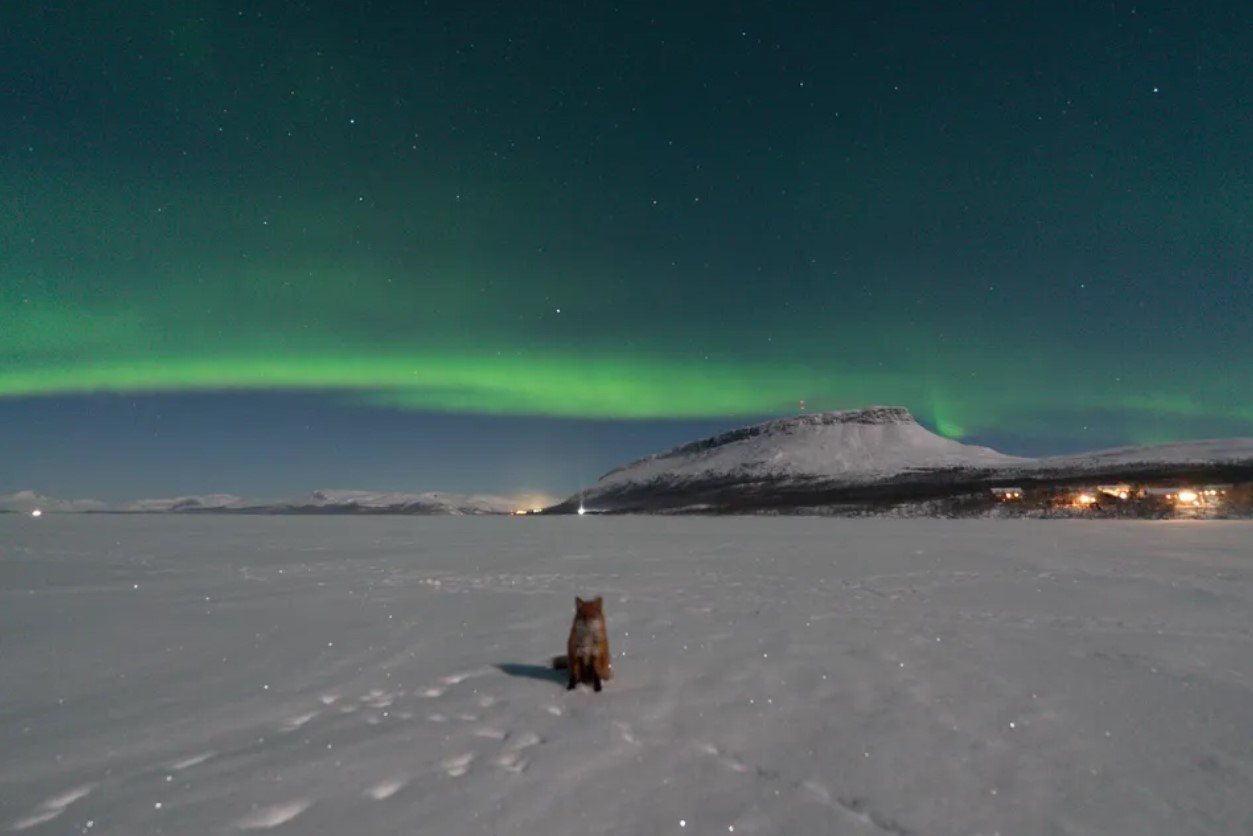 Охотник за полярным сиянием сделал удивительные фотографии, которые сочетают в себе финский фольклор и неожиданно любопытную лису.