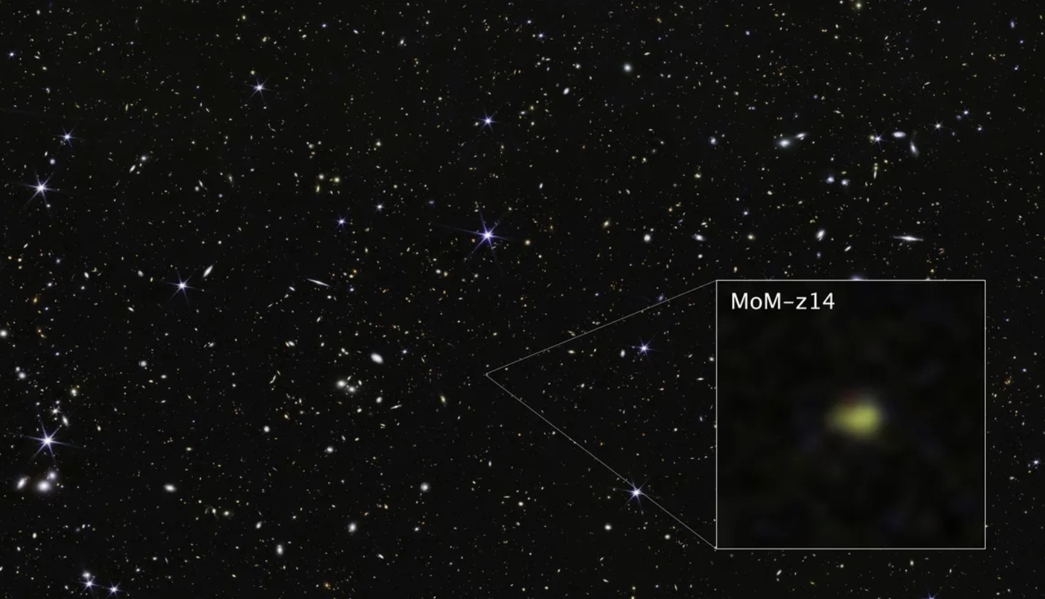 Астрономы подтвердили, что космический телескоп Уэбб действительно обнаружил самую далекую и самую старую галактику во Вселенной среди известных. Она получила название MoM-z14 и ученые увидели ее такой, какой она была через 280 миллионов лет после Большого взрыва. Это значит, что свет от этой галактики перемещался к нам более 13,5 миллиардов лет. Из-за этого свет галактики сместился в красную часть электромагнитного спектра.