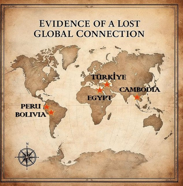 Независимый исследователь Мэтью ЛаКруа утверждает, что повторяющиеся архитектурные символы, найденные в каменных сооружениях по всему миру, указывают на единую доисторическую культуру, которая существовала десятки тысяч лет назад, пишет Daily Mail.
