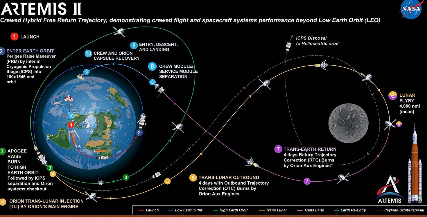Все дело в орбитальной механике и специфических требованиях миссии и ее оборудования. Все должно пройти практически идеально, чтобы 10-дневное путешествие астронавтов вокруг Луны на борту космического корабля "Орион" завершилось успешно.