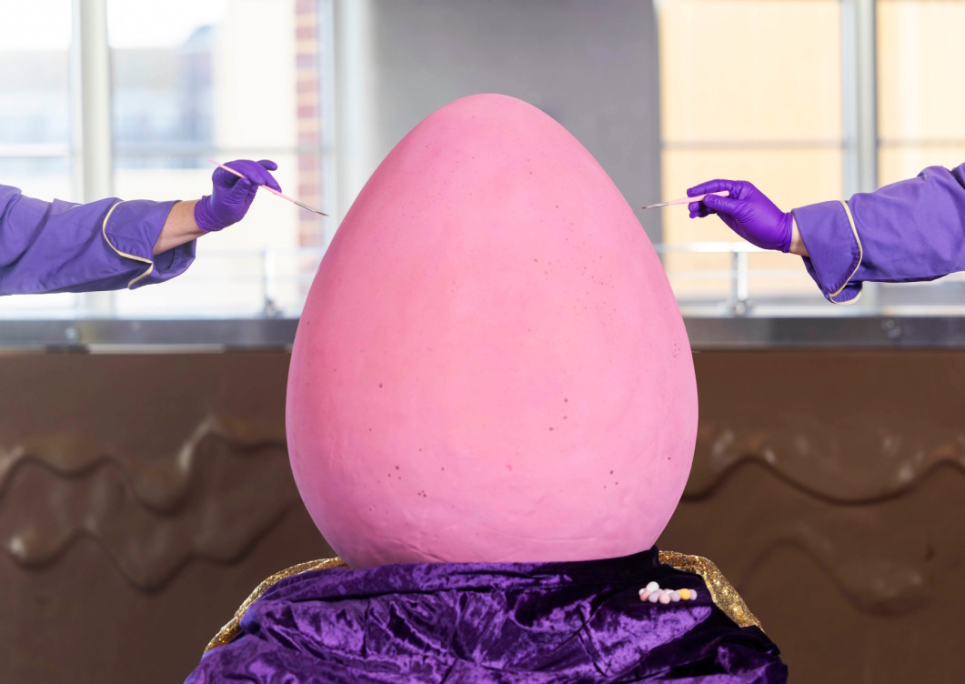 Мини-яйца Cadbury — еще один абсолютный фаворит и неотъемлемая часть британской Пасхи, потому создание мега-мини-яйца показалось любопытным вызовом. По словам шоколатье Cadbury Клэр Филдинг, они с коллегами взяли мгновенно узнаваемую скорлупу и шоколадную начинку и превратили ее в настоящий шедевр.