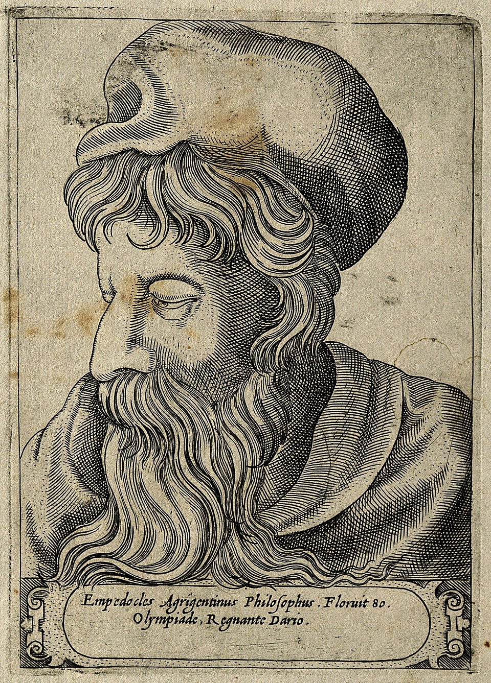 Эмпедокл — древнегреческий мыслитель, живший примерно в V веке до н. э. (около 494-434 гг. до н. э.) в городе Акрагас (современный Агридженто, Италия). Он был не только философом, но и поэтом, врачом и политическим деятелем. Эмпедокл известен как один из первых, кто предложил идею о четырех "корнях" (элементах) мира — земле, воде, воздухе и огне, которые соединяются и разделяются под действием двух сил: Любви и Вражды.