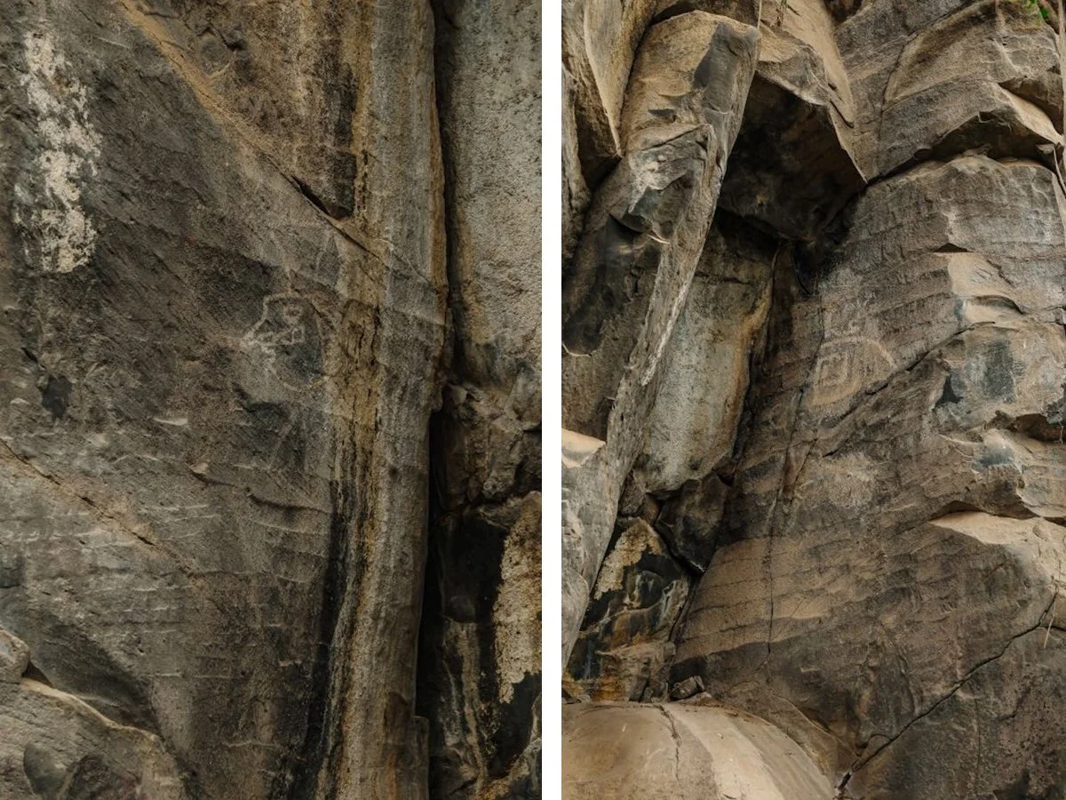 Хотя некоторые детали были нечеткими из-за выцветания, стиль и расположение указывают на древнее происхождение. Анализ показал, что рисунки были выполнены с использованием минеральных или растительных пигментов, тогда как резьба была создана путем многократного нанесения заостренных отметок.