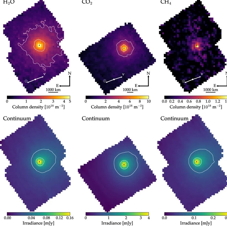 Именно в декабре за кометой 3I/ATLAS наблюдал космический телескоп Уэбб и астрономы продолжают анализ полученного большого объема данных. Новое исследование показало, что межзвездный объект 3I/ATLAS по мере удаления от Солнца начал выбрасывать в космос много воды, углекислого газа и метана. На само деле в этом ничего необычного: кометы, когда находятся относительно недалеко от Солнца, выделяют газообразные вещества под влиянием солнечного тепла. Кометы – это объекты, состоящие из камня и льда, и их лед сразу испаряется, минуя жидкую фазу.