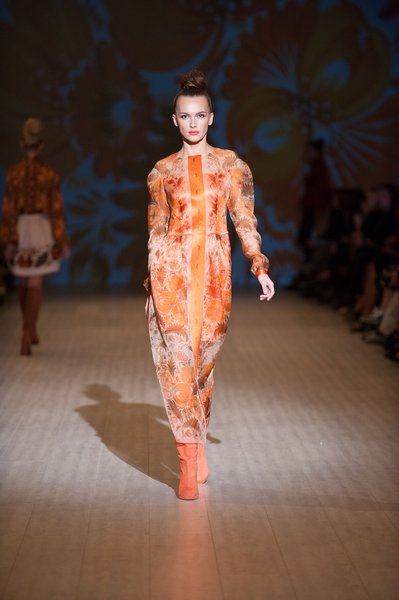 Этническую тему продолжили Ольга Тимкова-Ляховская для ТМ "Столичный", дом моды Rito и дизайнер Ирина Диль. Они использовали орнаментику и цвета, присущие традиционному украинскому костюму. Удачнее всего оказался выбор Ирины Диль, которая обратилась к петриковской росписи.