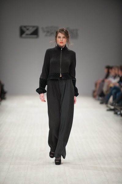 Тоньше всех патриотическую тему обыграл дуэт Татьяны Земсковой и Алены Ворожбит. Вообще-то при создании коллекции от Vorozhbyt&Zemskova осень-зима 2015-2016 они вдохновлялись эстетикой 1970-х и 1980-х. В итоге на подиуме можно было увидеть удлиненные жакеты, расклешенные брюки, трикотажные платья и платья из черной кожи, обильно декорированные застежками-молниями.
