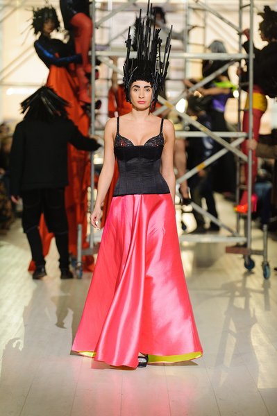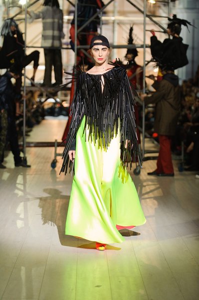 На этот раз дизайнер, лично занимающийся постановкой своих шоу, заставил моделей взбираться на строительные леса. Модели при этом были в платьях, юбках, топах-корсетах, мини-шортах и туфлях на каблуках, все – ярких неоновых цветов. Центральным декоративным элементом стали замысловатые головные уборы. Дизайнер не устает повторять, что одежда от ZALEVSKIY всегда идет против трендов. В этом сезоне Залевский выбрал для себя архитектурный крой и размышления об авангардном искусстве. И так уж совпало, что авангард на нынешней Украинской неделе моды оказался в числе центральных трендов. Но надо отдать Залевскому должное: свои слова он все-таки подтвердил делом и продемонстрировал, что, даже находясь в общем тренде, можно играть против правил и идти против течения. Для молодых дизайнеров, которым был посвящен пятый день UFW, такой урок – точно на пользу.