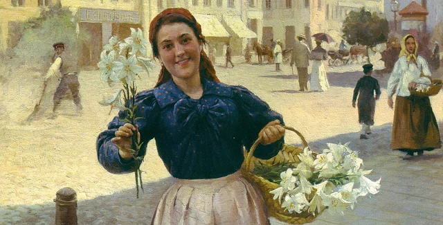 У теплу пору року квіти могли самі прийти в руки. На вулицях незмінно траплялися миловидні квіткарки — дівчата з околиць, де люди вирощували квіти на продаж. Скромний букет коштував копійки. Панянки, які отримували такий презент від своїх кавалерів, потім ходили з ним у руках як з очевидним знаком любові, а невеликі квіти на коротких стеблах можна було прикріпити до одягу прямо на грудях. З настанням холодів букети ставали трохи дорожчими, але все-таки залишалися доступними, оскільки в місті було чимало теплиць. Квіткарі навідувалися зі своїми кошиками в громадські приміщення — ресторани, клуби, кав'ярні або торгові павільйони.