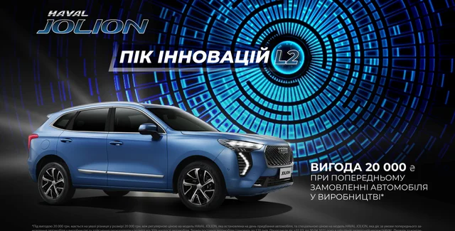 Мрієте про доступні автомобільні інновації? З 1 березня HAVAL в Україні відкриває попереднє замовлення інтелектуального кросоверу JOLION та пропонує сервіс персоналізованого підбору авто через онлайн-конфігуратор. Скориставшись послугою попереднього замовлення Ви зможете придбати HAVAL JOLION з вигодою 20 000 грн.*, обрати колір, варіант інтер"єру та конфігурацію відповідно до Ваших побажань, а також одними з перших отримаєте досвід автономного водіння рівня L2.
