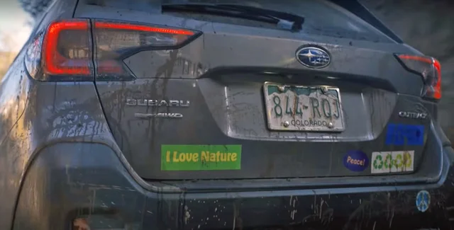 За сюжетом, сімʼя американців (чоловік, дружина та двоє дітей) їдуть на природу на Volkswagen ID.4. Вони радіють, що на електрокарі не потрібно турбуватися про витрату бензину, а відсутність шуму ДВЗ дозволяє "насолодитися звуками природи". В один із моментів у кадрі зʼявляється забризканий брудом Subaru Outback із наклейкою "Я люблю природу" на задньому бампері. Наступний кадр: мати сімейства з іронією говорить: "Серйозно?".