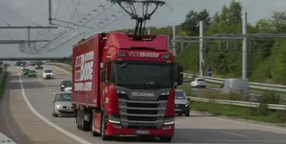 Тестують спеціально створені вантажні електромобілі Scania та Mercedes-Benz із штанговими струмоприймачами на даху. При з'їзді з магістралі струмоприймач ховається, і електрокар перемикається на живлення від акумуляторної батареї.