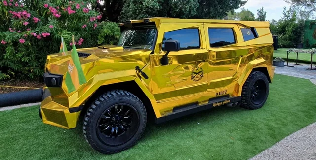 У США виставили на продаж унікальний позолочений Dartz Prombron Aladeen Edition. Розкішний позашляховик оцінили в пристойні 750 тис. доларів. Він прославився тим, що знявся в знаменитому фільмі Саші Барона Коена "Диктатор". Про це повідомляє сайт ТопЖир.