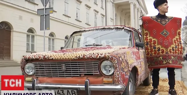 Обшиті килимами Жигулі шокують мешканців і гостей Львова. Доробка авто не коштувала власнику жодної копійки.