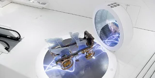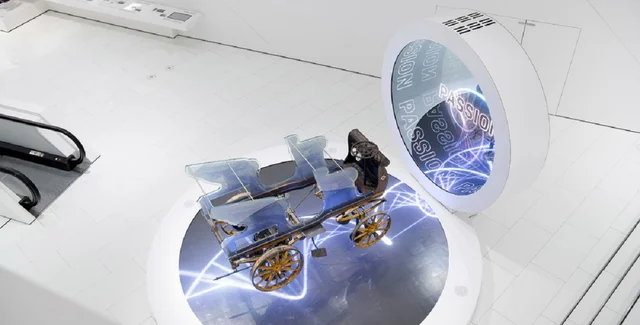 Спеціально для електромобіля створили стенд із тривимірною графікою та голографічними зображеннями, також відвідувачам транслюється короткий фільм про авто. Інсталяція створює ілюзію подорожі у часі.
