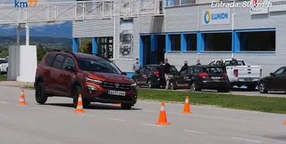 Відмінна оцінка за "лосиний" тест присуджується у разі, якщо швидкість його проходження становить 77 км/год і вище. Нова Dacia Jogger у найкращій спробі показала всього 70 км/год і навіть на цій швидкості автомобіль сильно кренився і демонстрував недостатню повертаність.