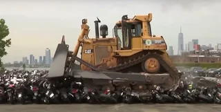 Це вже не перший подібний акт демонстративного знищення байків у Нью-Йорку. Всі вони конфісковані поліцією, адже їхня експлуатація в місті заборонена.