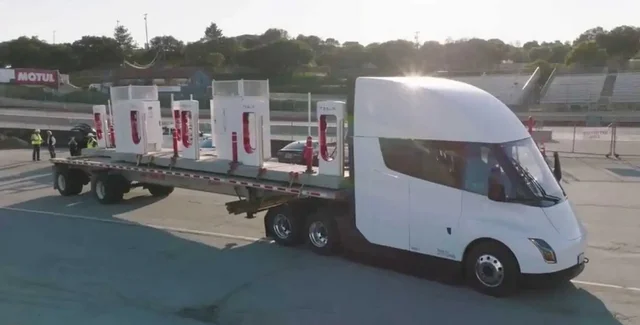 Вантажний Semi привіз станції швидкого заряджання електрокарів Tesla Supercharger. Їх вирішили встановити на знаменитому американському автодромі Laguna Seca у Каліфорнії.