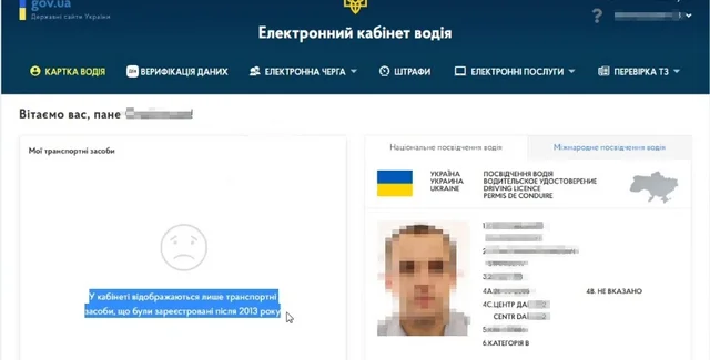 Спочатку електронний кабінет водія працює не повністю — його функціонал відновлений частково і деякі послуги, як і раніше, недоступні. Поки що запропоновано лише два сервіси: