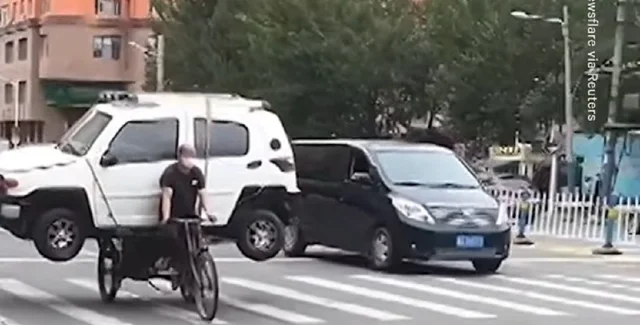 Ні для кого не секрет, що велосипеди в Китаї надзвичайно популярні. На них їздять на роботу, транспортують пасажирів і навіть важкі вантажі — такі, як автомобілі. Відео з перевезенням авто у велосипеді з'явилося на Youtube-каналі NowThisNews.