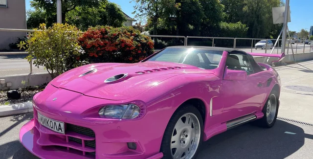 Спочатку Mercedes Sbarro SL Roadster був синім, але власник перефарбував його у рожевий колір. Примітно, що українець має ще й суперкар Ferrari 360 Spider Sbarro і він також рожевий. Обидва авто мають індивідуальні номери. Очевидно, рідкісну машину вдалося якимось чином вивезти з України під час війни.