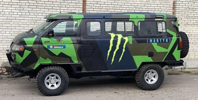 За основу взято старий УАЗ-452Д 1981 року, але його передня частина перероблена з використанням деталей японського позашляховика. У Mitsubishi Pajero Sport взяли фари, радіаторну решітку і передні двері.