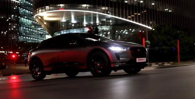 Електромобіль Jaguar i-Pace отримав легку композитну броню і куленепробивне скло товщиною 22 мм. Він захищений за стандартом В4 — витримує обстріл із пістолета 44 калібру або дробовика 12 калібру.