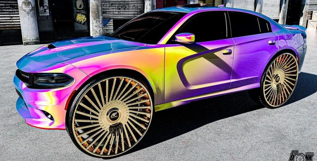 Дизайнер показав незвичайний яскравий тюнінг седана Dodge Charger. Автомобіль отримав перламутровий колір кузова та величезні 32-дюймові колісні диски. Фото авто опублікували на акаунті 412donklife в Instagram.