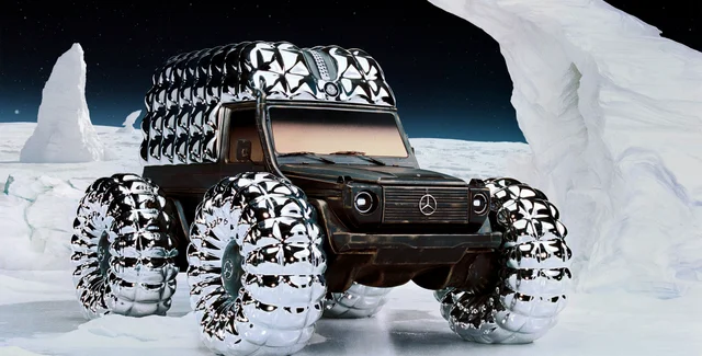 За основу для проєкту взяли старий Mercedes-Benz G-Class першого покоління. Для нього вирішили пошити якусь подобу пуховика сріблястого кольору.