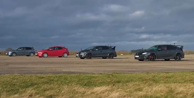 Блогери порівняли у драг-рейсингу п'ять поколінь зарядженого хетчбека Honda Civic Type R. Вони з'ясували, який автомобіль виявився швидшим. Відео опублікували на Youtube-каналі Carwow.