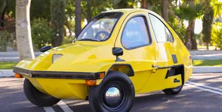 Кузов мікроавтомобіля виготовлений зі скловолокна. Виставлений на продаж автомобіль пофарбований у жовтий колір. Ліворуч розташовані двері для посадки всередину.