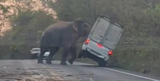 На відео не помітно, чи робив водій щось, що могло спровокувати слона. Проте розлючена тварина почала перекидати авто на бік. Очевидці кричали від шоку.