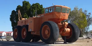 Цей автопоїзд сягає завдовжки близько 150 метрів і оснащений величезними колесами. Він може проїхати практично будь-якою місцевістю.