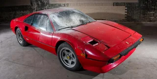 У Ferrari 308 GTB розбите лобове скло, а на кузові видно вм'ятини і тріщини. Деякі деталі відсутні, а в салоні потріскалося оздоблення і стирчить проводка. Деталі двигуна покриті шаром іржі.
